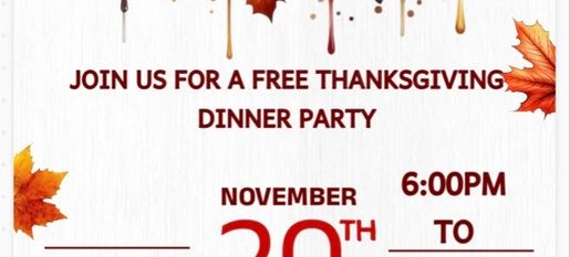 Join us let’s be THANKFUL for life & our community. This Free dinner party is for kids and adults. There will be lots to eat, drink and off course, playtime. This is our way of saying, ‘We are THANKFUL FOR YOU ALL’